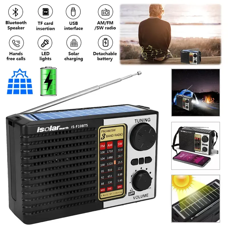 Portable Solar Radio AM FM SW Radio with Loud Speaker, Digital Speaker with Strong Reception, LED Lights, USB Charging, Detachable Battery Compact Emergency Radio for Indoor, Outdoor, Travel, Storms